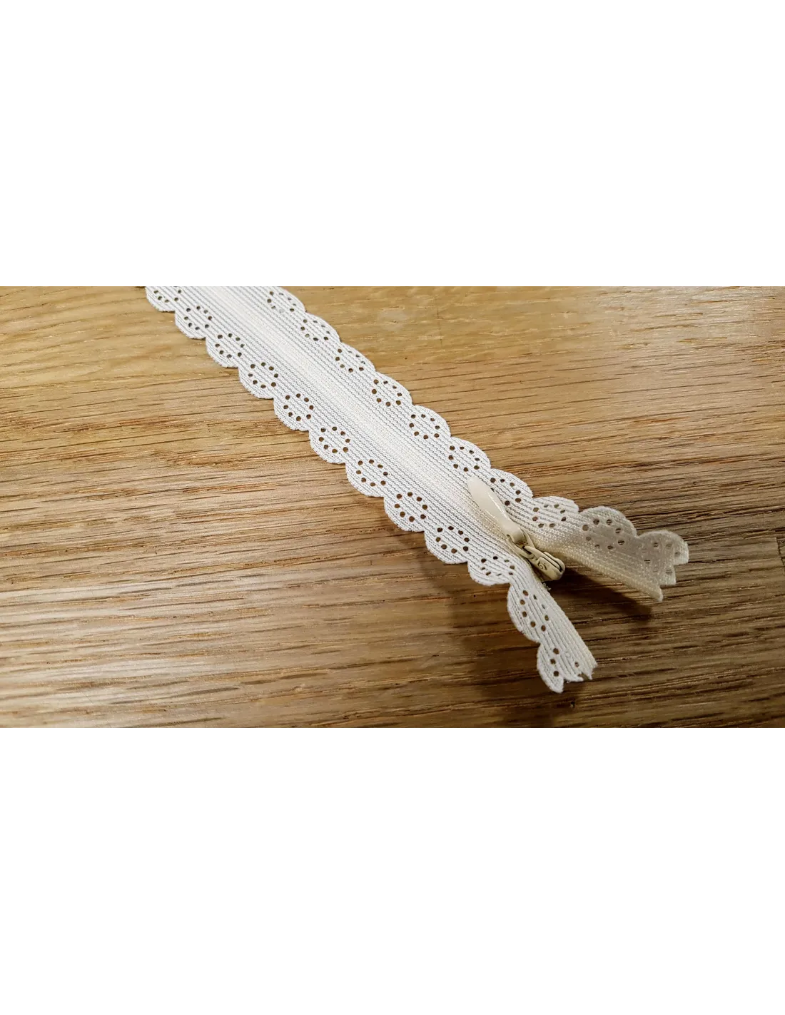 Fermeture Eclair Z82, Nylon invisible dentelle, blanc cassé, 60cm