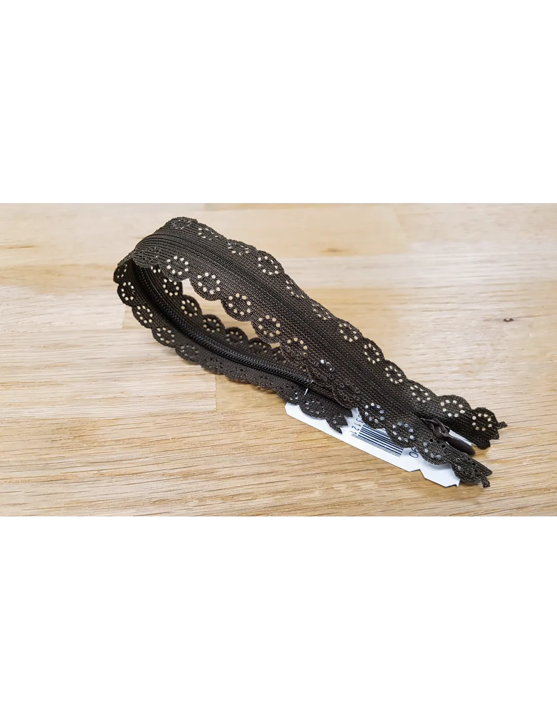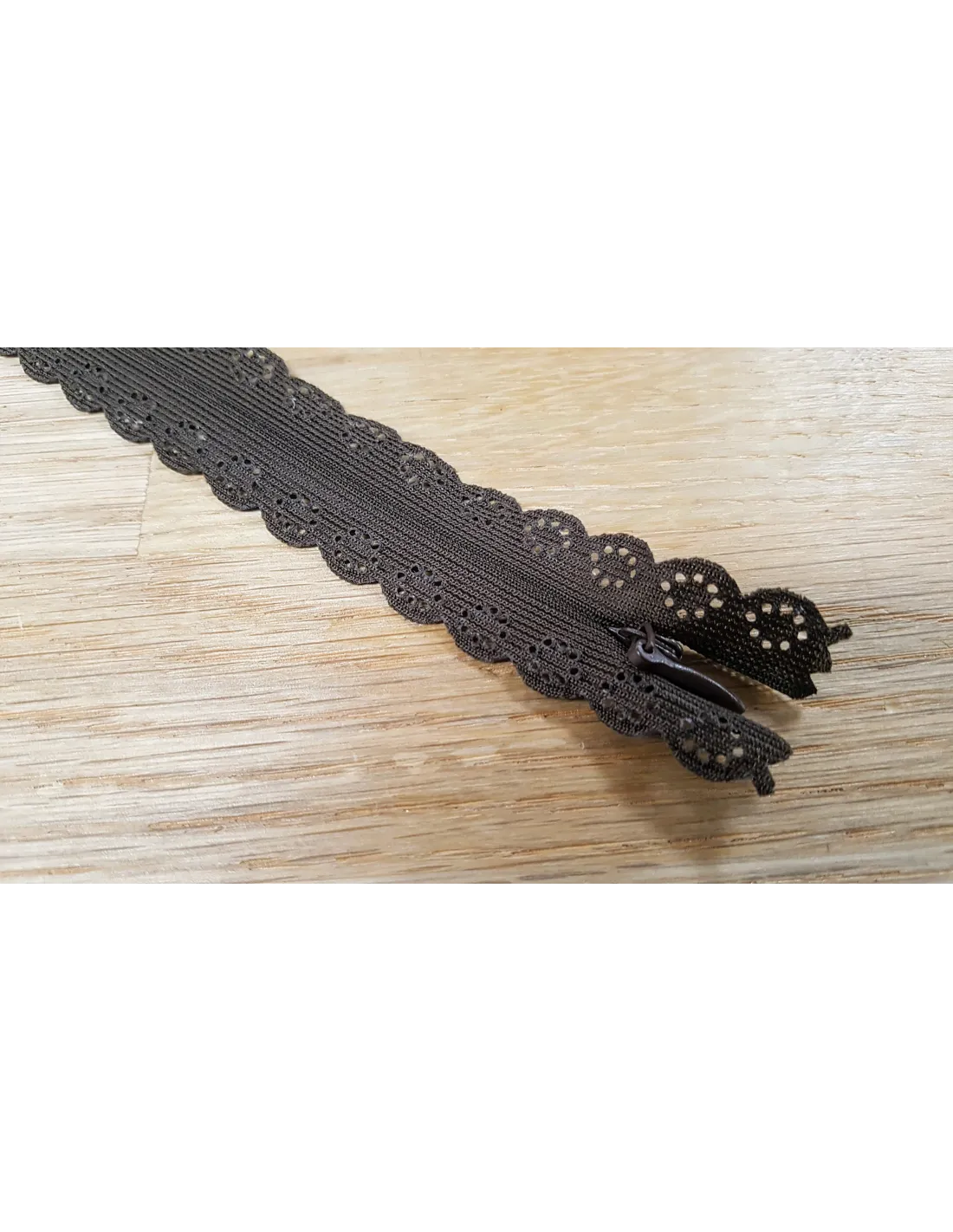 Fermeture Eclair Z82, Nylon invisible dentelle, marron brou de noix, 60cm